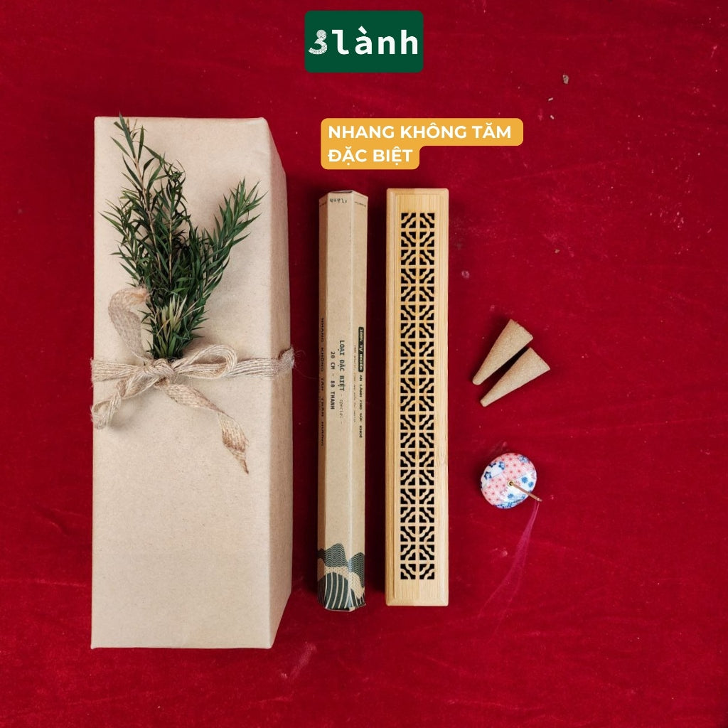 3️⃣Bộ Quà Tặng Thiền “Tịnh” (Loại Thượng Hạng): 1 Nhang không tăm loại thượng hạng (80 thanh / 1 ống) + khay xông trầm hương + thiệp viết tay