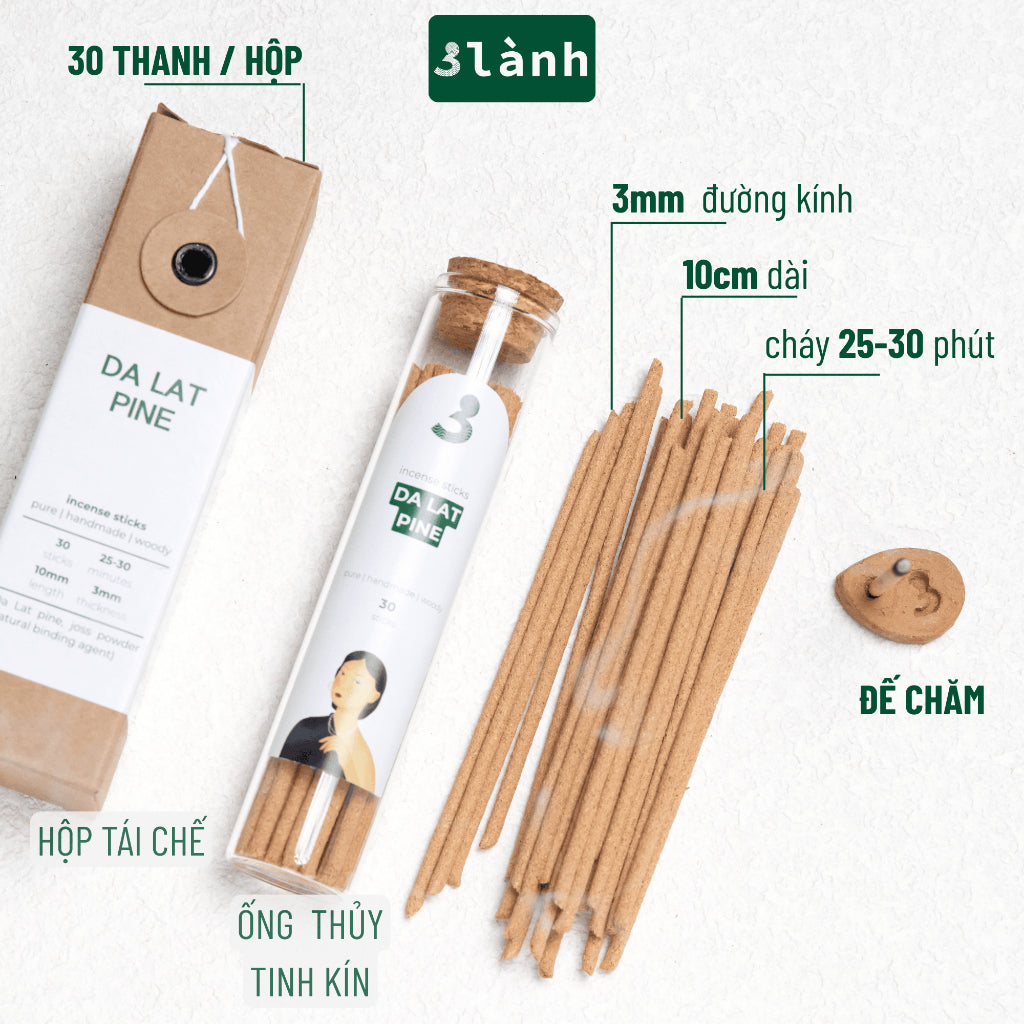 Thông tin sản phẩm Nhang Thanh Thủ Công Thông Đà Lạt 3 Lành Nhang Xông Thơm Thanh Tẩy Tự Nhiên
