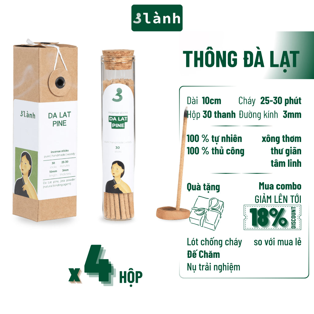 Thông tin sản phẩm Nhang Thanh Thủ Công Thông Đà Lạt 3 Lành Nhang Xông Thơm Thanh Tẩy Tự Nhiên